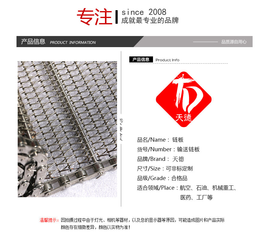 不銹鋼網帶屬于非標準件,我們將根據你提供的規格長寬,材質,絲徑,編制結構尺寸,支軸直徑,支軸間距,鏈條型號等數據核算成本和制作.